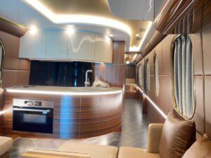 Album dự án mobihome cải tạo từ nền xe khách 45 chỗ trở lên, không gian rất lớn, phù hợp lưu trú tập trung, mô hình dịch vụ hoặc công năng sử dụng đặc thù. Hình ảnh thể hiện phương án cải tạo, bố trí không gian và các hạng mục hoàn thiện theo từng mục đích sử dụng.